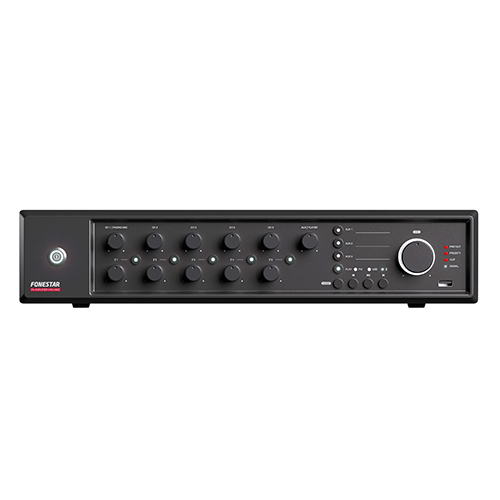 MAX-480Z 480W mikserivahvistin, FM,USB ja BT • Monipuoliset sisääntulot ja lähdöt • 5kpl säädettävää 100V kaiutinaluetta • 24VDC pakkosyöttöohjaus
